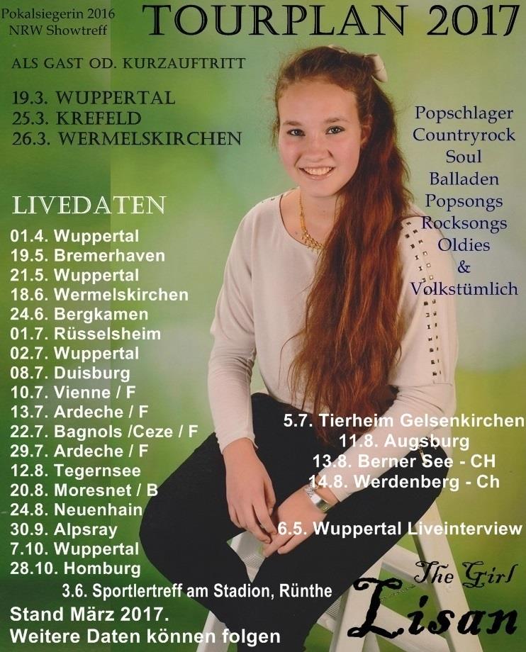 hier der aktuelle Tourplan 2017, Änderungen sind vorbehalten.